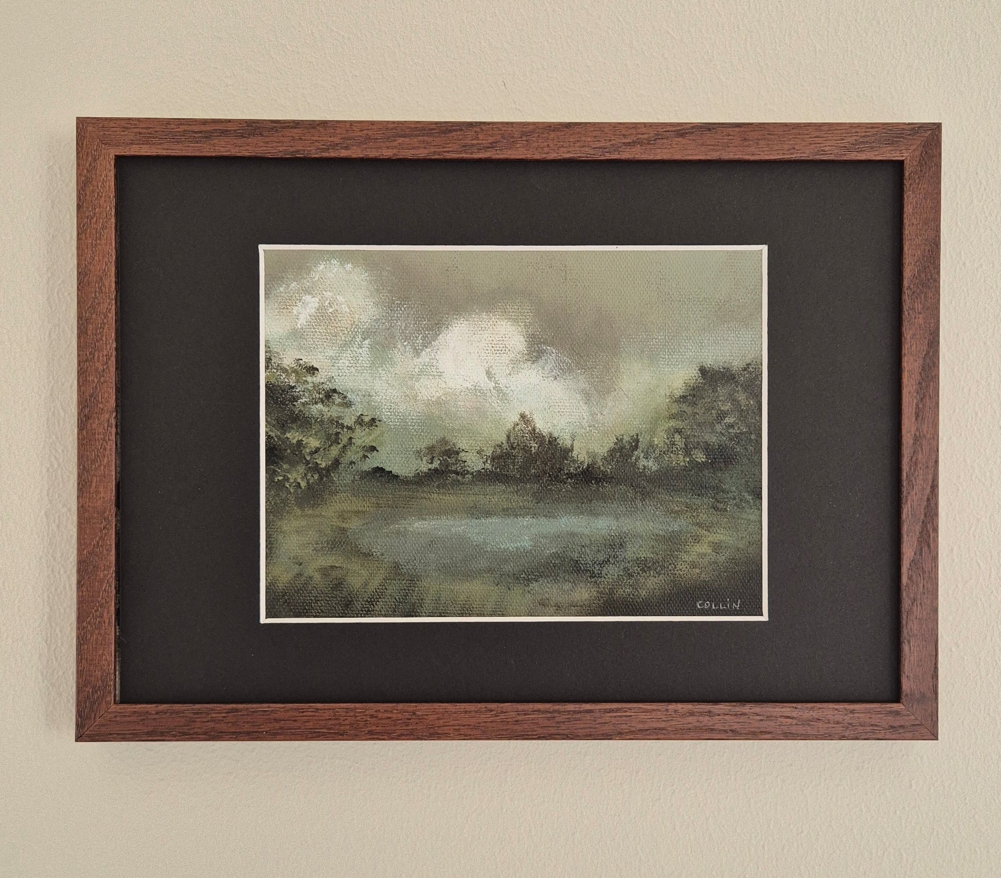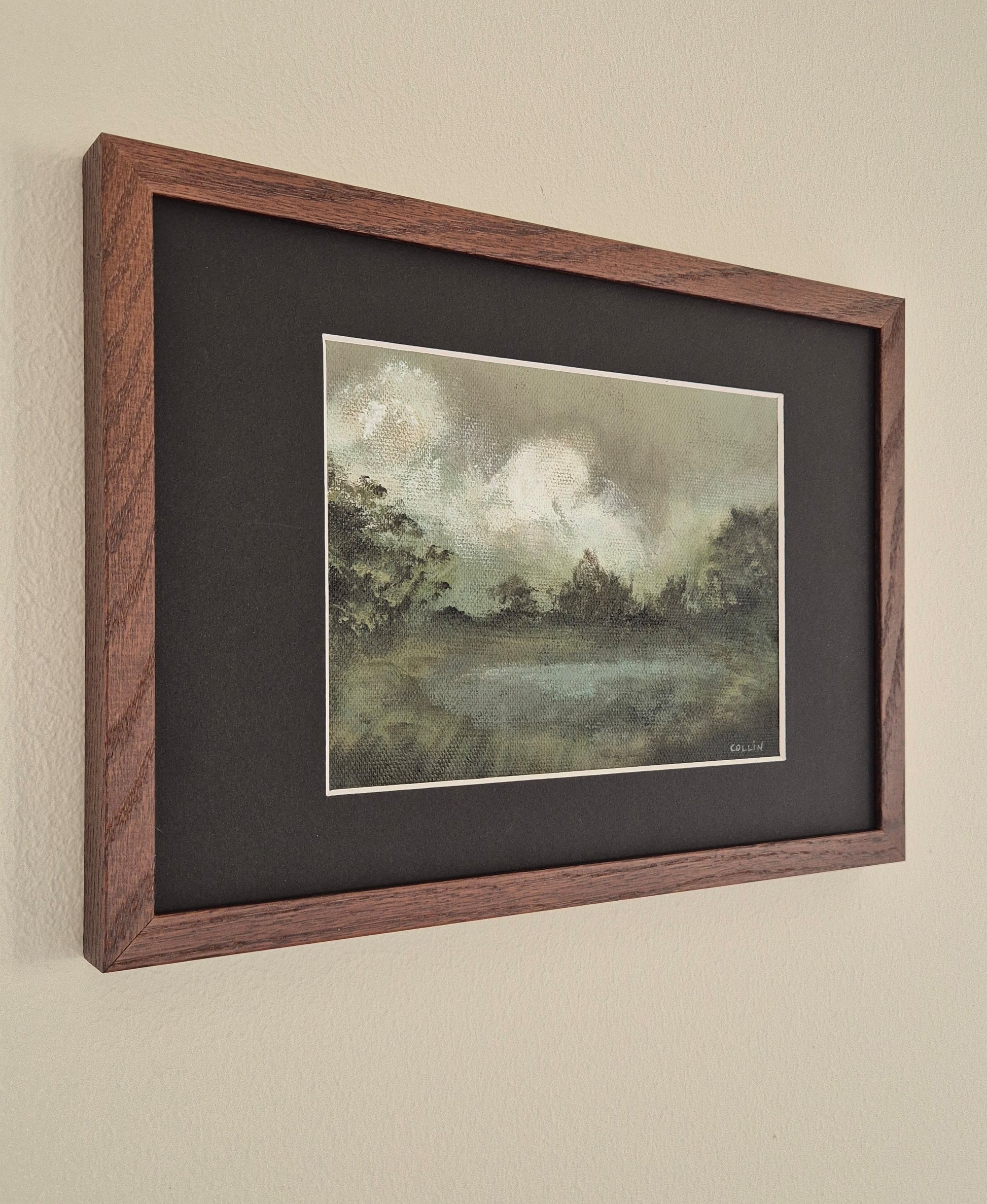 Acrylic on canvas, 30x20 cm, brown wooden frame with glass.